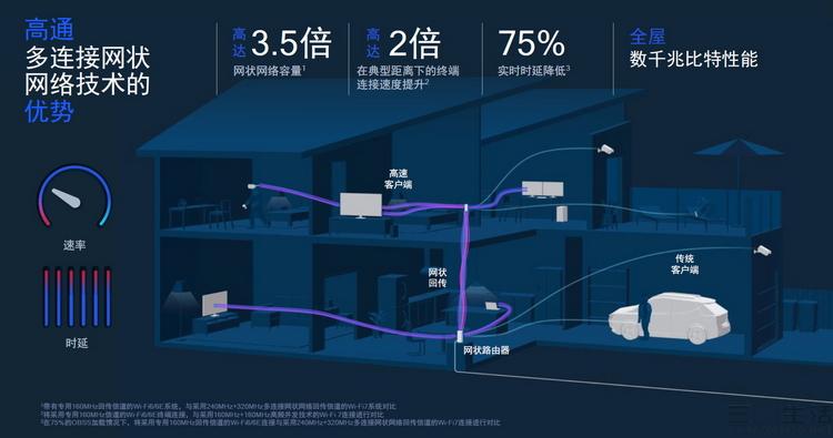 因此这也就意味着,至少在目前的技术条件下,高通骁龙平台的手机、高通FastConnect的网卡以及Networking Pro路由器平台,就成为了唯一可以在国内提供较为完整WiFi7功能体验的选择。相比于其他家所受到的制约,高通相关方案由于多了一个通道的并发设计,使得它可以拥有近乎翻倍的WiFi连接带宽,从而得到显著提升的网络体验。