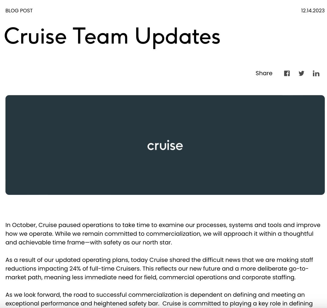 ▲裁员公告“我们将进行人员裁减,影响全职Cruisers的24%。”