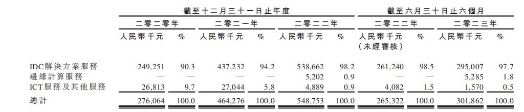 从收入来看,云工场科技收入主要由IDC解决方案服务、边缘计算服务、ICT服务及其他服务三部分构成,其中IDC解决方案服务是公司核心业务。2022年该业务实现收入5.39亿元,占公司收入比例为98.2%。
