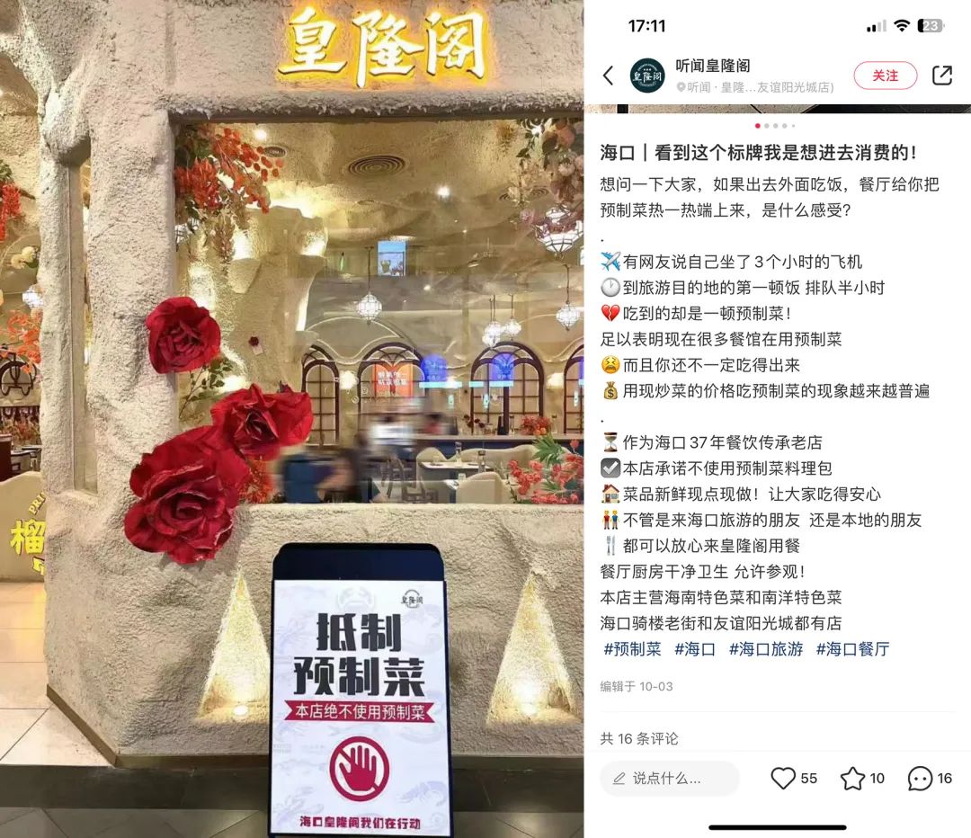 但最近,“承诺没有预制菜”似乎成了很多餐厅的新卖点。