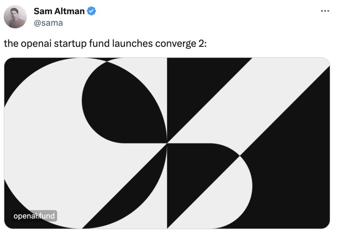 OpenAI创始人Sam Altman在12月14日发推表示,OpenAI创业基金已推出Converge 2加速器计划。该计划面向杰出工程师、设计师、研究人员和使用人工智能重新构想世界的产品开发者。通过技术讲座、办公时间、社交活动以及与领先从业者的对话,OpenAI将一起探索在人工智能前沿建设中最重要的机遇和挑战。此外,参与者将获得OpenAI创业基金100万美元投资,并加入其创立的创造者社区