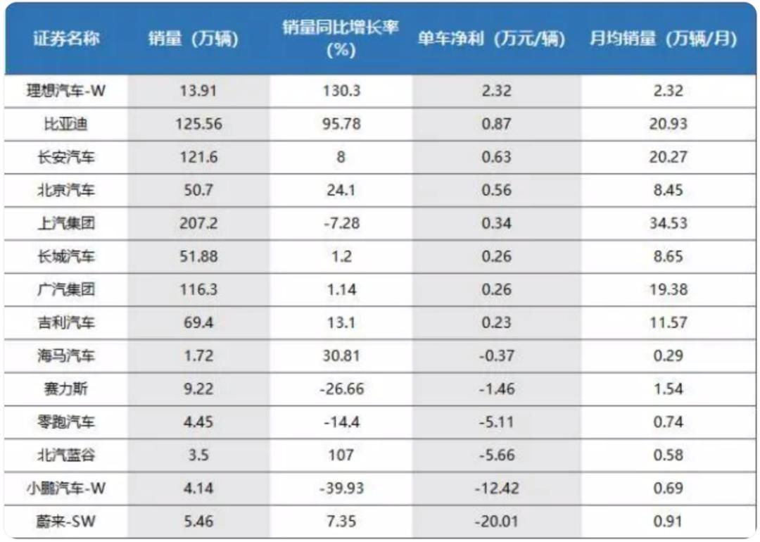 再从第二季度实际入账的平均每辆车售价来看,理想均价为32.3万元,蔚来为30.5万元,小鹏汽车为19.1万元,小鹏的单车价格垫底。而从二季度平均单车毛利润情况看,理想汽车平均每辆车售出毛利润为6.79万元,蔚来为1.90万元,小鹏平均每辆车毛亏损为1.64万元,上半年,理想单车净利为2.32万元,小鹏单车净亏损12.42万元,蔚来单车净亏损20.01万元。