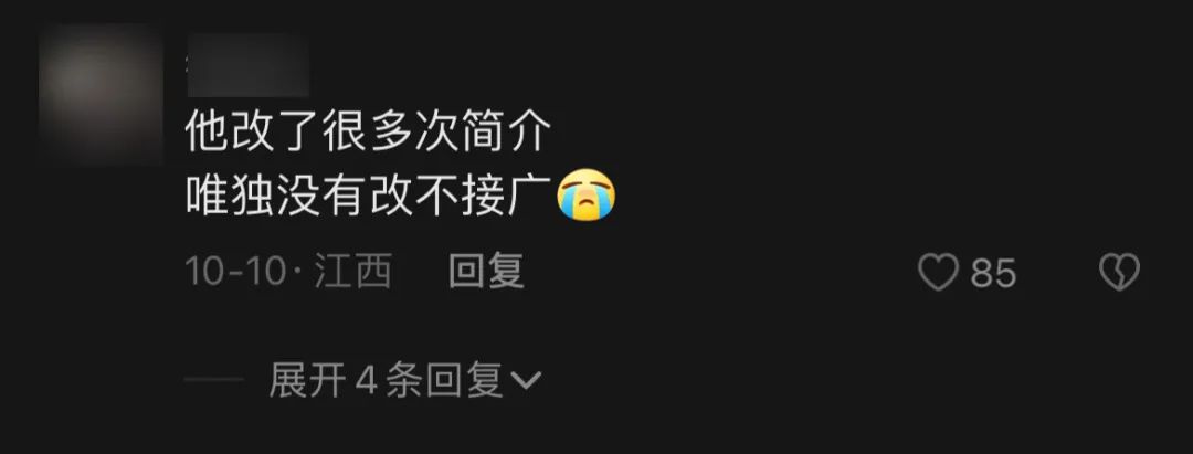 最重要的是,他不带货,不变现,把不接广告的宣言写在简介里。