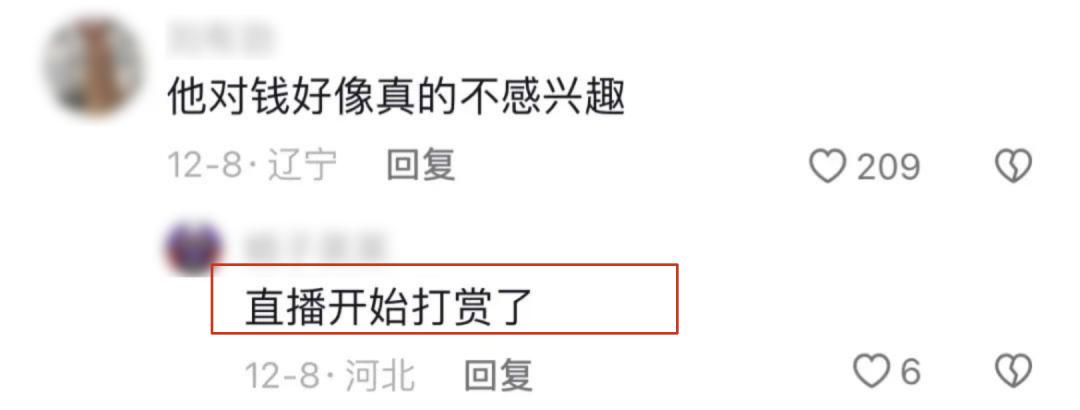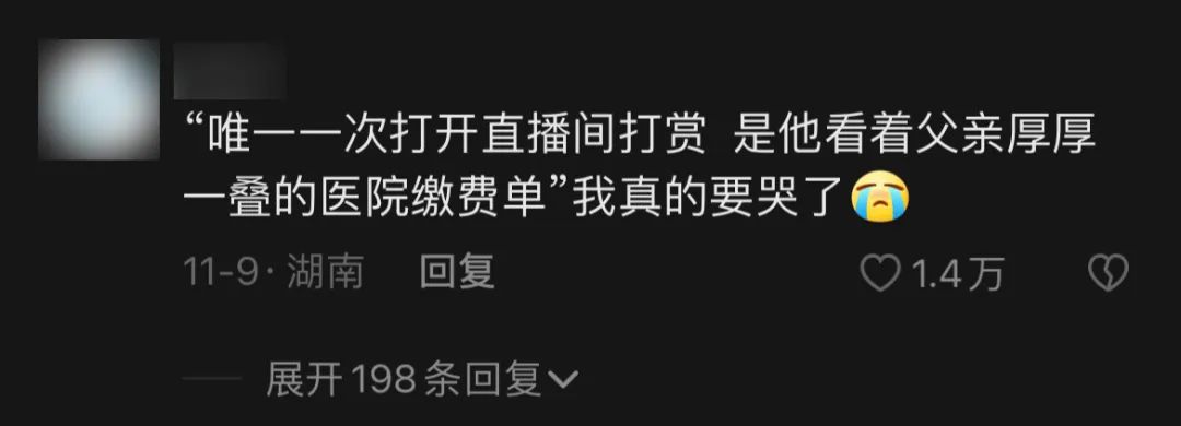少有的例外,是一期直播中,因为父亲的医院缴费单,他打开了打赏,后来他说:
