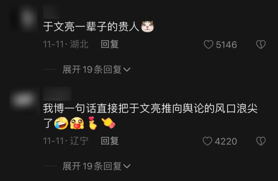 诸多网友涌入连麦对方评论区,大呼“你是于文亮的贵人” / 图源:抖音评论区