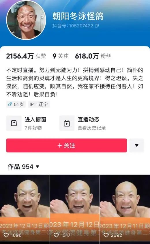 可惜不过一个月,他便因“圈钱”风波掉粉百万,与此同时,另一个被封为“普通人之神”的网红“冬泳怪鸽”翻红。