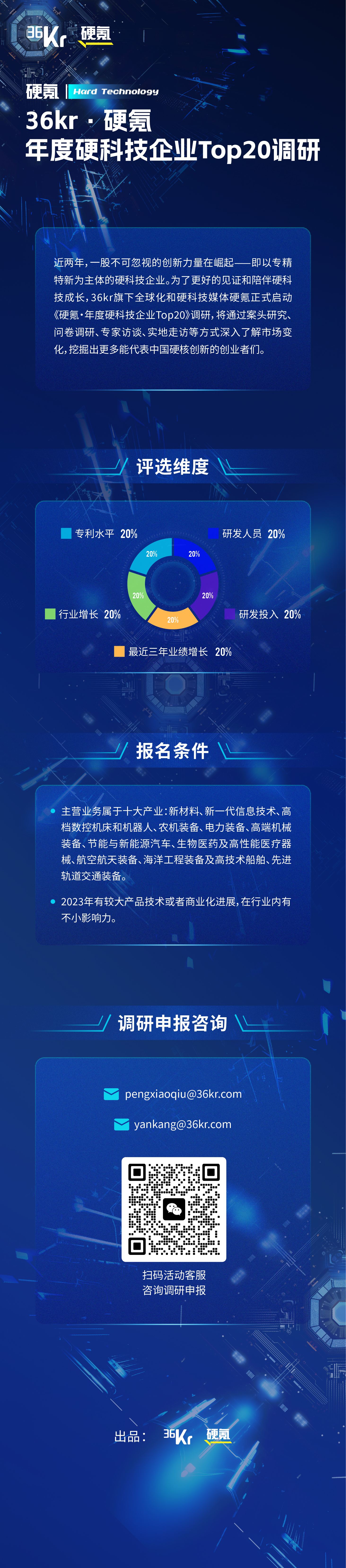 36kr·硬氪年度硬科技企业Top20调研正式启动