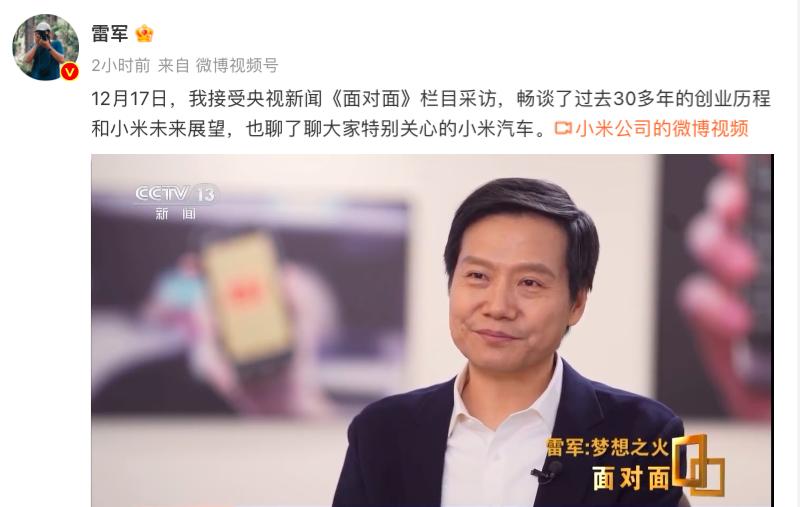 就在图片泄露的同时,雷军也登上了央视的人物专访节目《面对面》。