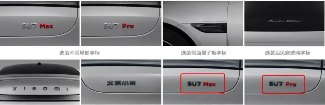 车名暂定为SU7,前脸车标为小米Logo,车尾则是“xiaomi”字母,尾部左下方为“北京小米”的标识。