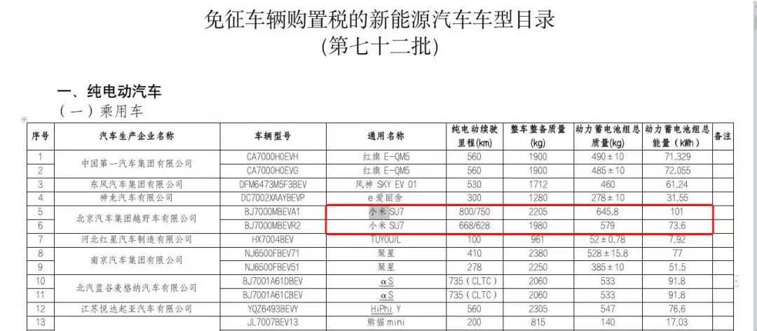 结合最近两天的信息密度,可以确定的是,小米汽车已经越来越近了。上周工信部公布的最新一批免征购置税新能源汽车名单中,小米首款汽车小米SU7也赫然在列。