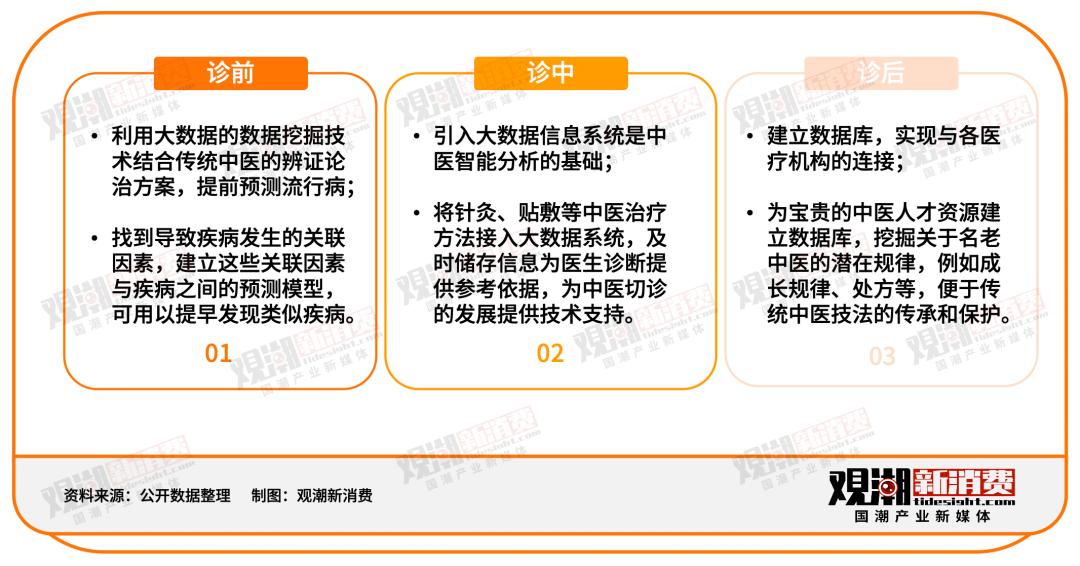 对于中医机构而言,科技赋能也是大趋势。目前与科技结合的主流形式包括中医智能设备和“中医+大数据”两类。
