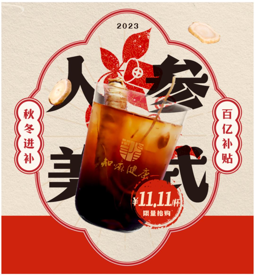 同时,知嘛健康自成立以来也推出众多联名产品。今年双11期间,知嘛健康与天猫双11联名推出新品人参美式,采用人参、龙眼、甘草等中药材搭配阿拉比卡咖啡豆,将“朋克养生”进行到底。