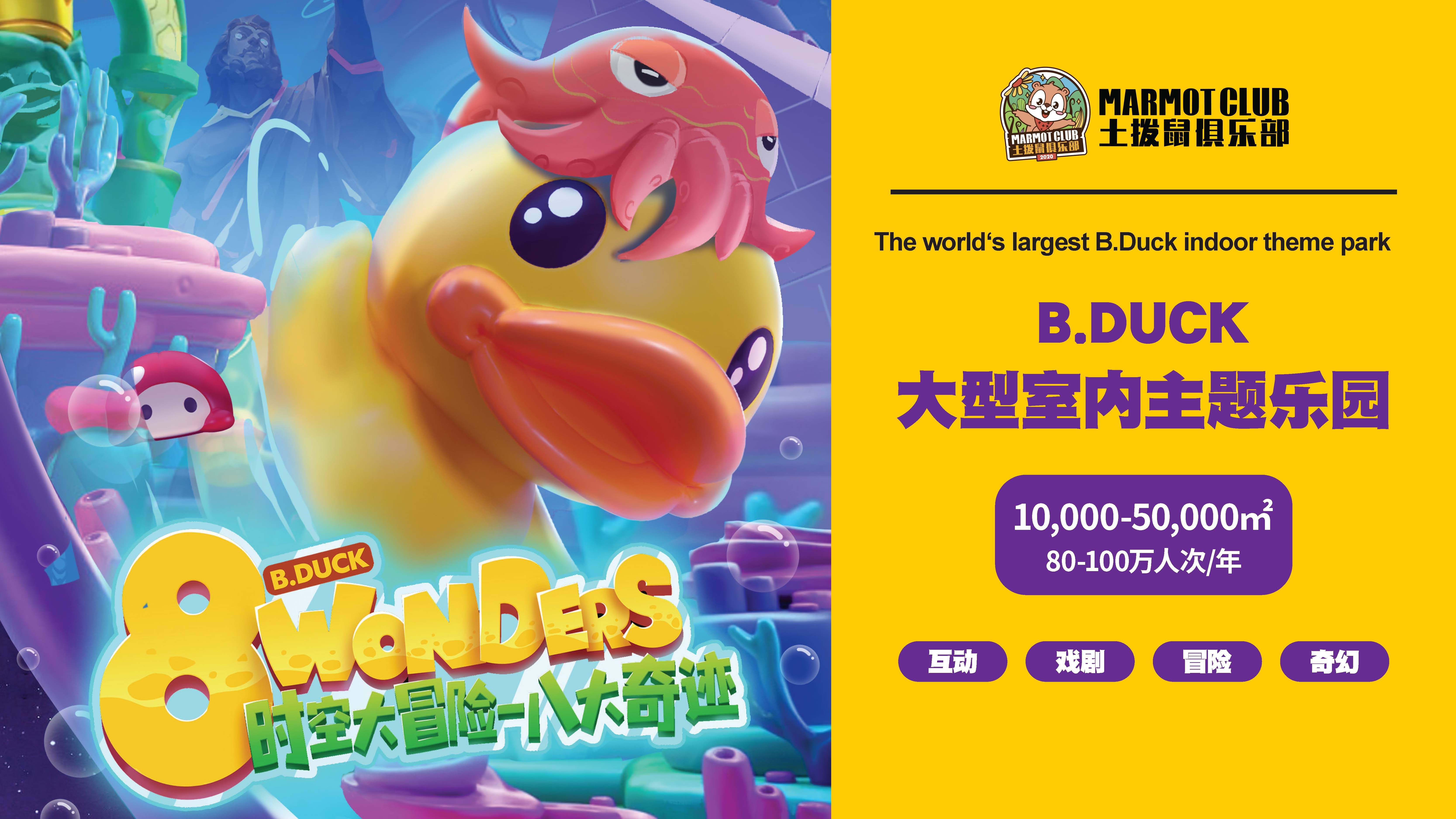 “B. Duck大型室内主题乐园及城市文商旅”方向研发的首个产品将以“B. Duck超时空大冒险-八大奇迹”为主题,围绕秦始皇兵马俑、胡夫金字塔、巴比伦空中花园等八大奇迹展开B.Duck的奇幻冒险,融合实景娱乐、戏剧互动、奇幻冒险、沉浸式演绎、主题餐饮等多元业态,为文旅和本地生活客群提供全方位、一站式的城市综合游玩体验。