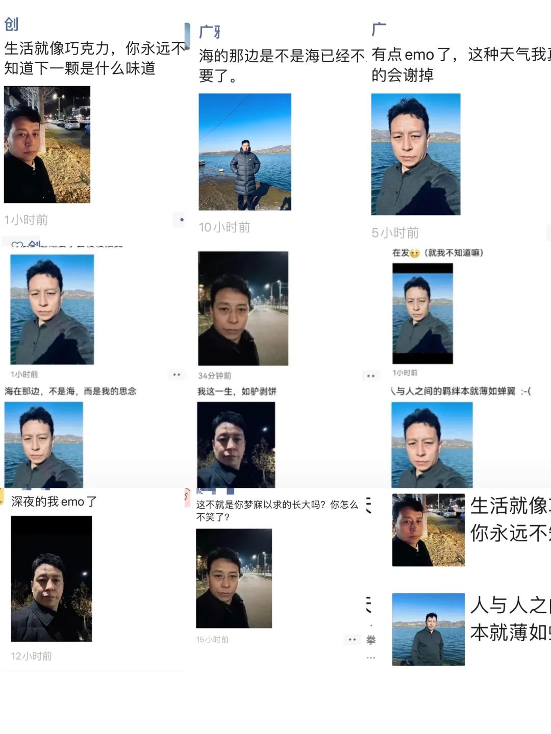 深夜 emo 的他,习惯发一张伤感的自拍照,加上各种悲伤深情的文案: