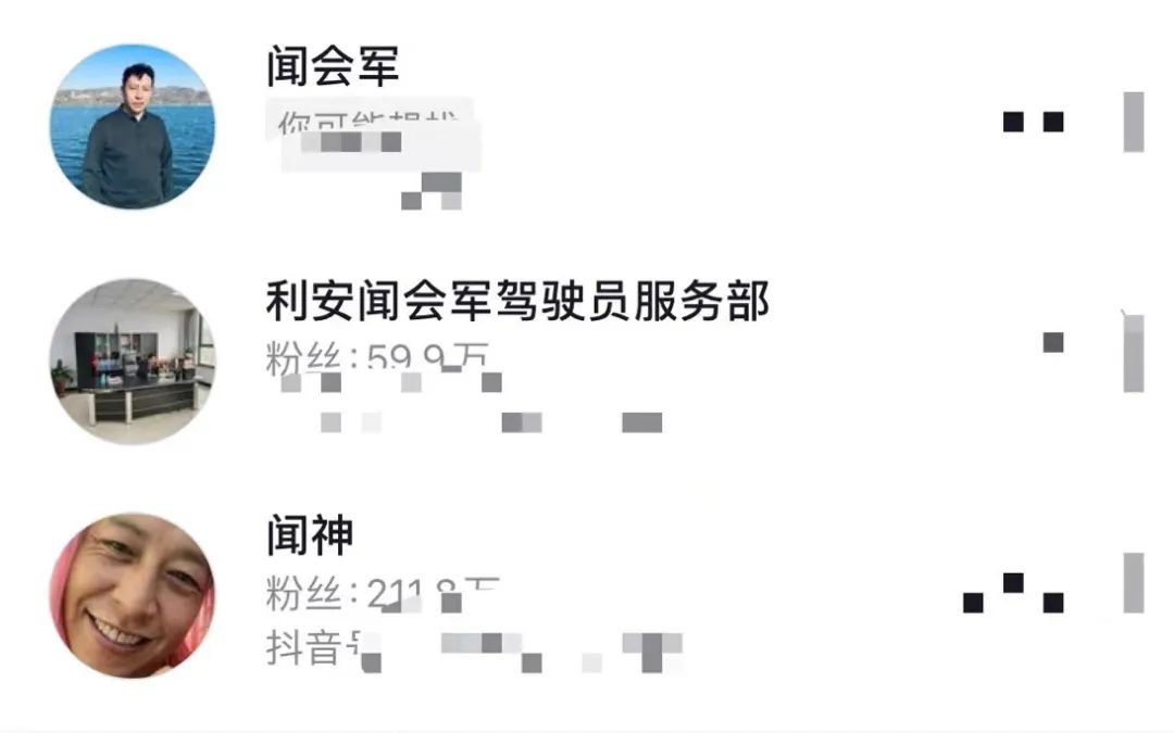 近一年的时间,他在抖音平台上开设了 3 个账号:“ 利安闻会军驾驶员服务部 ( 以下简称 ‘ 利安闻 ’) ” 、“ 闻神 ”、 “ 闻会军 ” 。