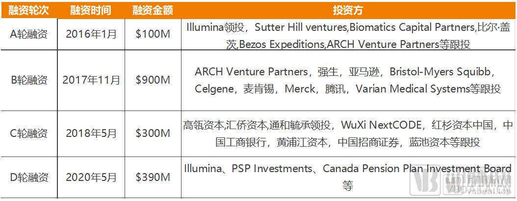 2017年11月,Grail完成9亿美元B轮融资,投资者包括强生、亚马逊、麦肯锡、腾讯等知名企业。2018年5月,Grail完成3亿美元C轮融资,投资者包括高瓴、红杉、汇桥、通和毓承、工商银行等。