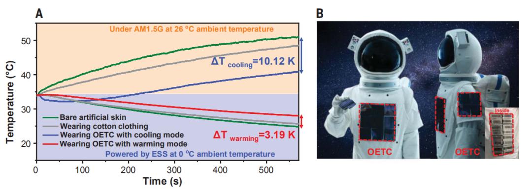 通过更多的优化,研究人员表示,OETC 在高端热调节领域可能展现出潜在的应用,并且甚至能够在极地地区和个体太空行走等恶劣环境中增加人类的生存能力。