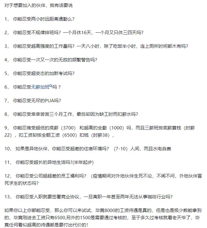 连锁咖啡的员工,家家有本难念的经。