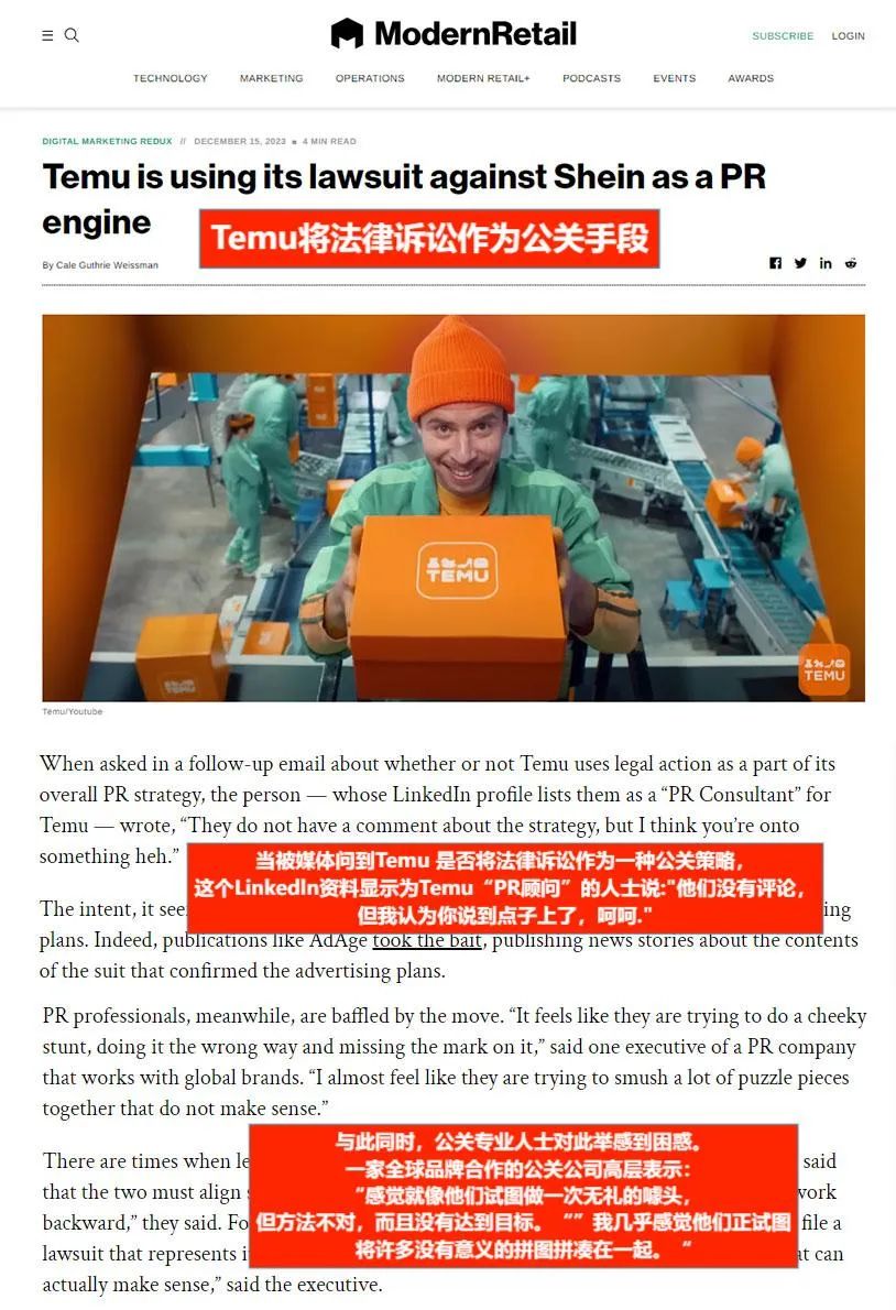 在2023年即将结束的时候,同时Shein也正处于被传上市的节骨眼,Temu掀起讼诉风波,业内讨论,或为狙击其上市?