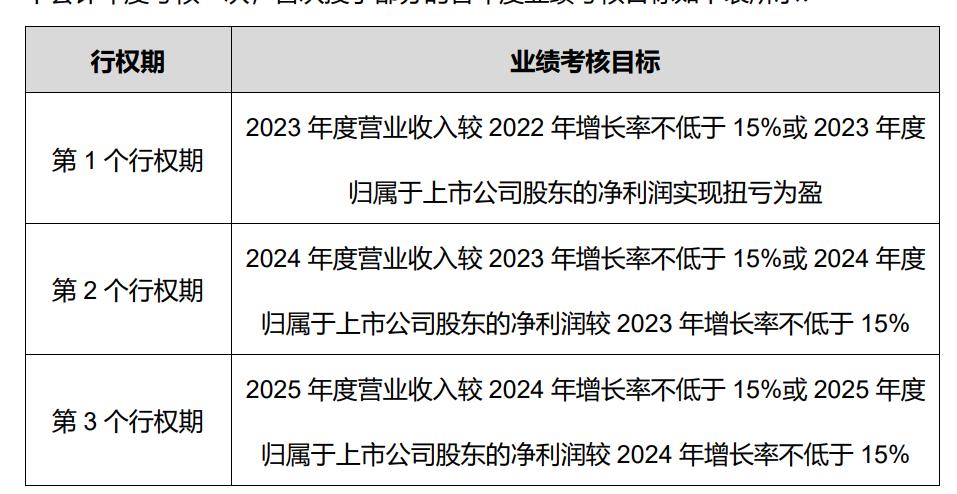 2023年5月,安奈儿再次抛出激励计划,其中设定了2023年至2025年的业绩考核目标,其中2023年的目标为:营业收入较2022年增长率不低于15%或净利润实现扭亏为盈。