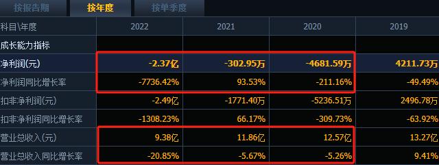 2020年至2022年,安奈儿营收分别为12.57亿元、11.86亿元、9.38亿元,增长率分别是-5.26%、-5.67%、-20.85%,净利润分别为-4681万元、-302万元、-2.37亿元,增长率分别是-211%、93%、-7736%。扣非净利润分别增长-309%、66%、-1308%。