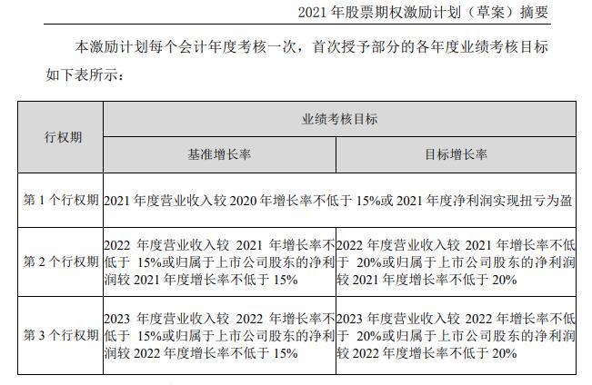2021年8月,安奈儿又发布2021 年股票期权激励计划草案,考核目标为2021年度营业收入增长率不低于15%或2021年度净利润实现扭亏为盈。2022年度和2023年度营业收入增长率不低于20%或净利润增长率不低于20%。