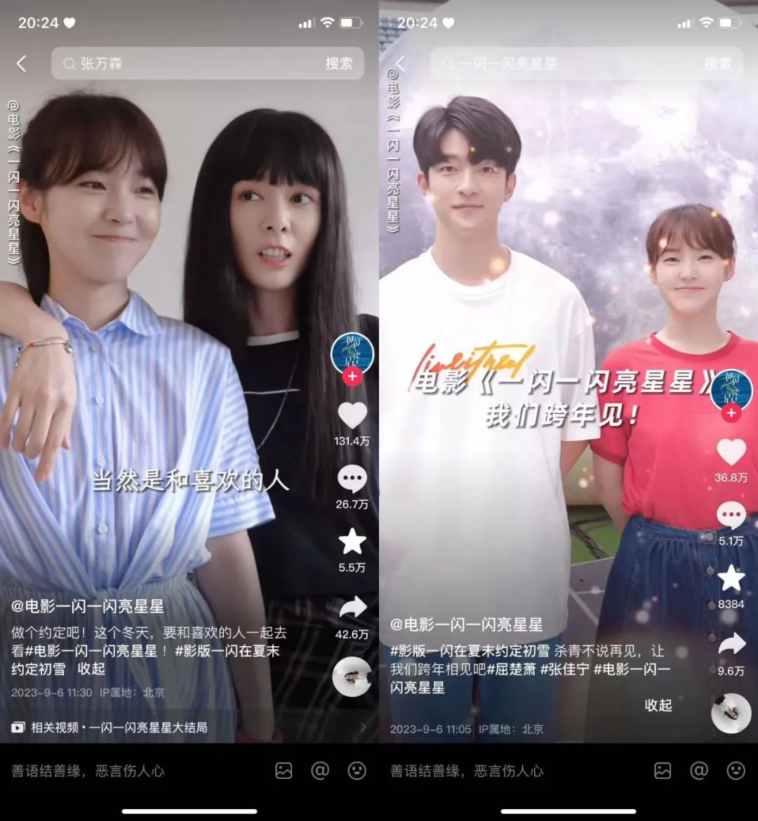 首先这部电影有个“好底子”。 剧版《一闪一闪亮星星》虽然不算出圈爆火,但受众足够稳定垂直、热情也足够高,更重要的是剧版《一闪一闪亮星星》的故事发展和结局留下了重大去情感遗憾,为电影版提供了扩大营销投入的“立足点”。