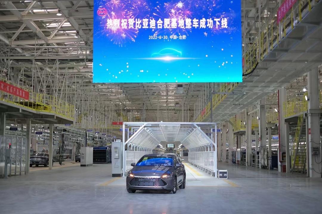 2021年8月,比亚迪在合肥投了150亿的超级基地破土动工,不到一年,第一台整车就顺利下线。