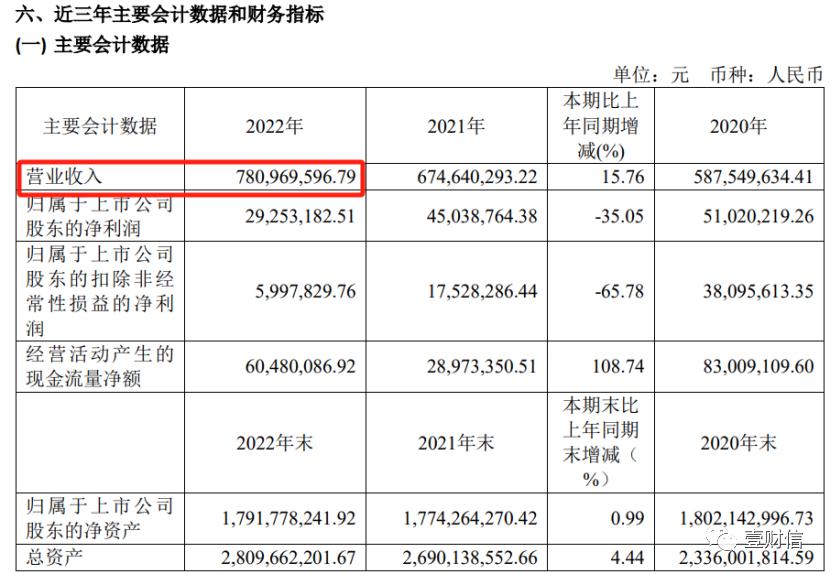 福光股份于今年4月28日披露了其2022年年报,并在7月4日更新了2022年年报(修订版)。值得注意的是,上述两份文件皆显示,福光股份2022年合并口径的主营业务收入为78,096.96万元。