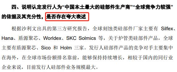 申报稿显示,盾源聚芯为“中国本土最大的硅部件生产商”,对此深交所还进行了问询。