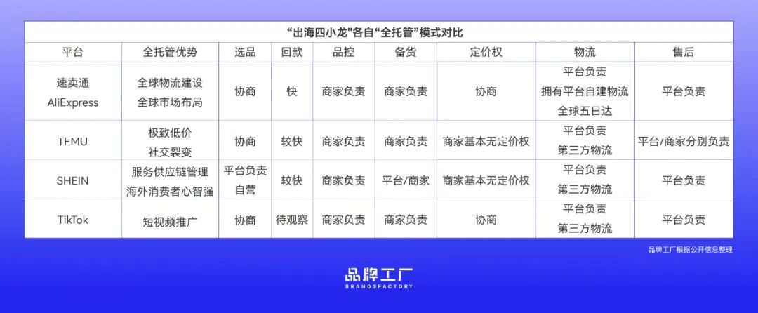 “出海四小龙” 全托管模式对比