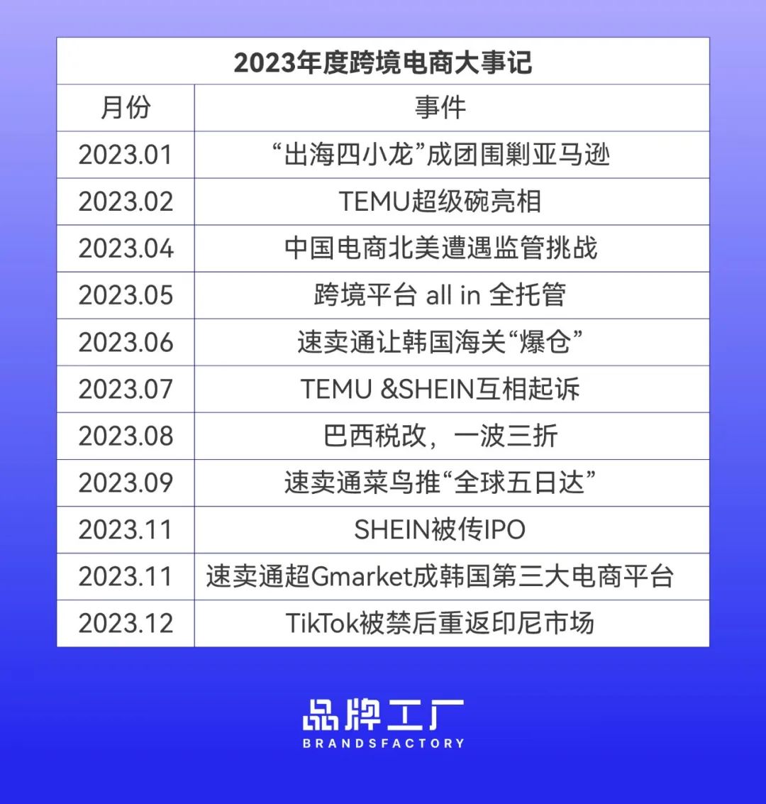 品牌工厂盘点了2023年跨境圈值得关注的大事件,方便读者了解。