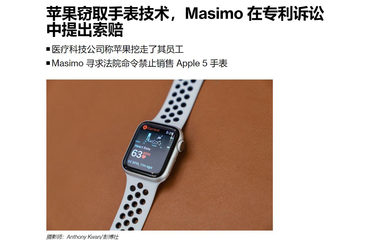 Masimo果断起诉苹果公司,借着和自家高层交流的借口挖人,打着精诚合作幌子窃取商业机密,并利用这些专利来制造和销售多款Apple Watch型号。
