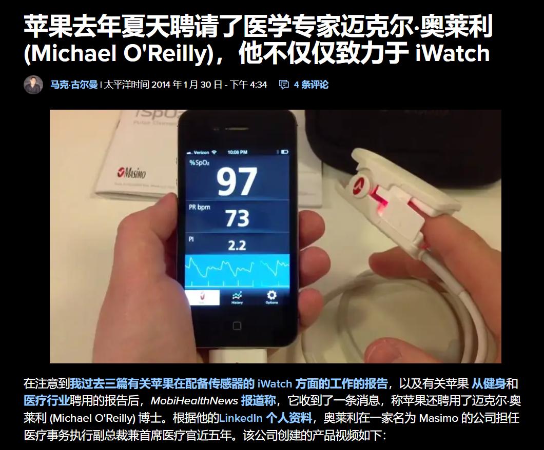 可能是因为效果确实行,根据官方公布的法律文件,在Apple Watch发布的前一年,也就是2013年,苹果曾经找过Masimo,希望能就Apple Watch用上该公司的医疗技术进行合作。