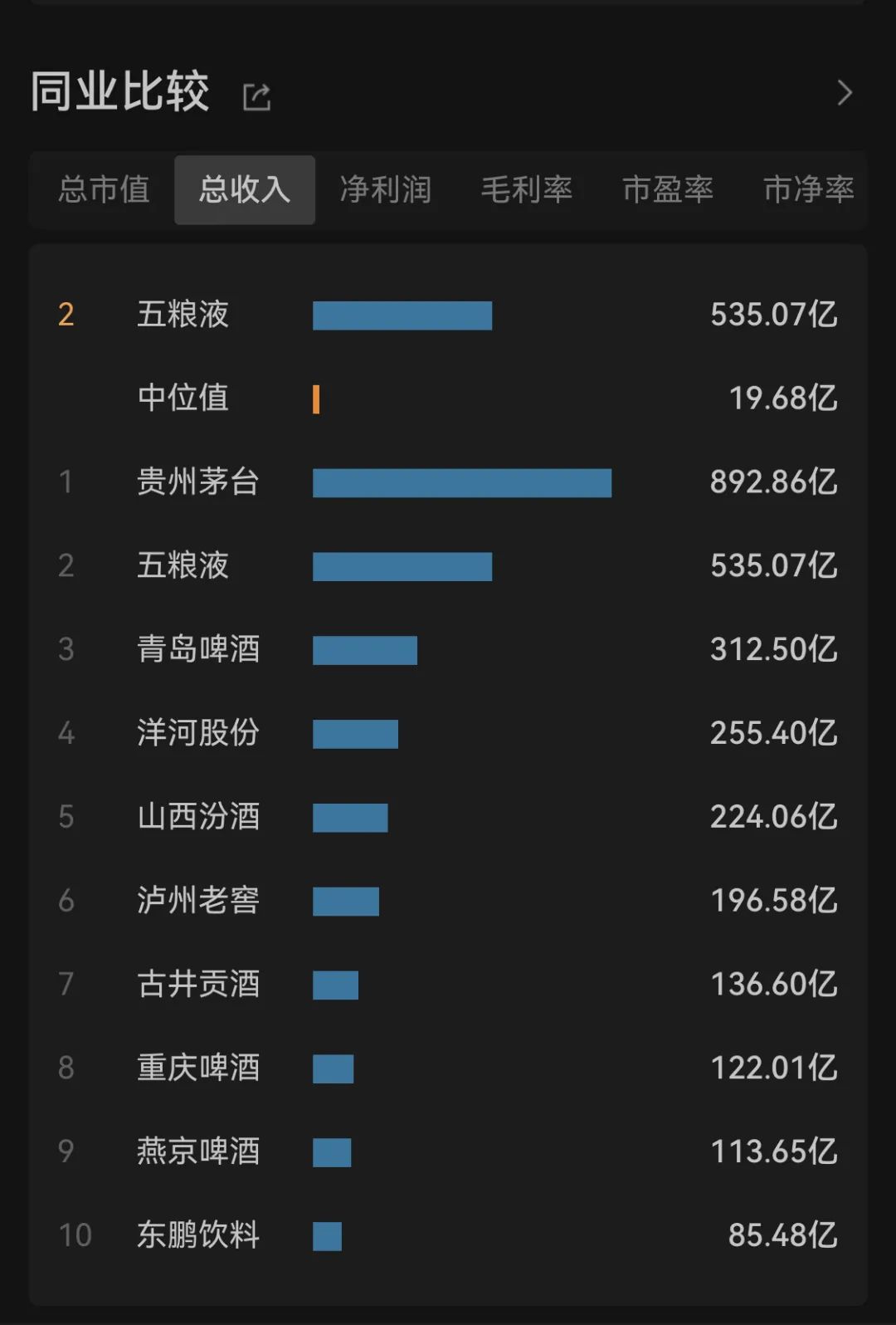 截止2023年12月20日收盘,五粮液市值约为5100亿元,仅占茅台2.1万亿的市值的四分之一。