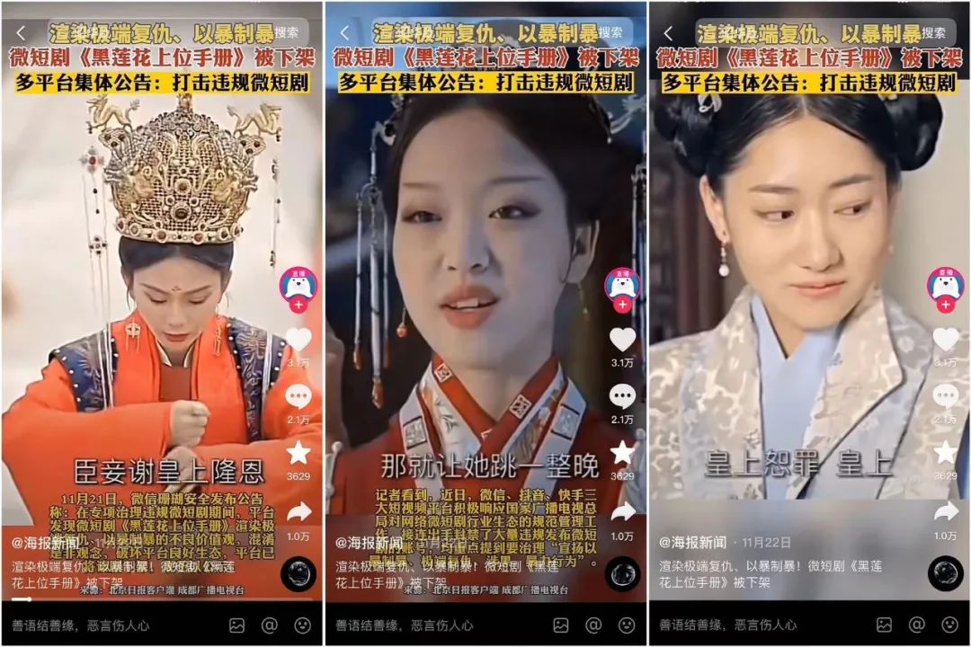 同日,快手安全中心也发布公告称,“近期,平台在巡查中发现,微短剧《黑莲花上位手册》渲染极端复仇、以暴制暴,是非观念混淆,过度渲染人性中的恶,带来负面的价值导向。平台已将该剧下架,现予以公示。”
