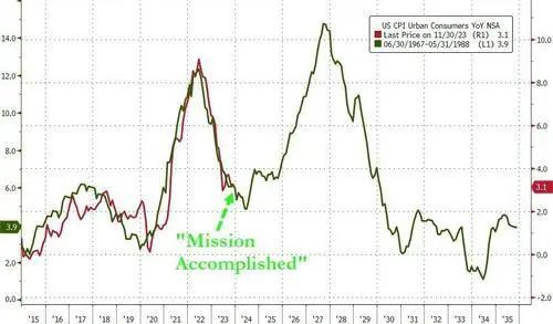 11月,美国CPI同比增速已经从去年6月创下的四十年新高9.1%放缓至3.1%,距离央行2%的目标仅一步之遥。