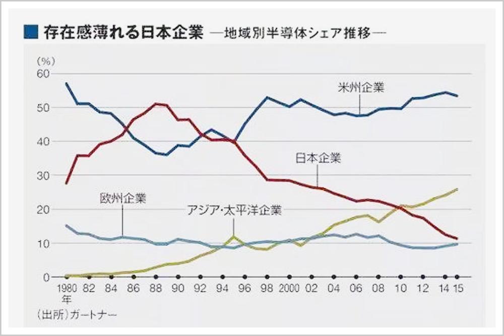 20世纪80年代到90年代,在日本政府的扶持下,日本半导体产业蒸蒸日上,在与美国在DRAM(动态随机存取存储器)产业的竞争中日渐占据上风。