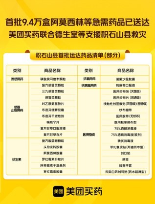 美团买药联合德生堂等支援积石山县救灾:首批9.4万盒阿莫西林等急需药品已送达