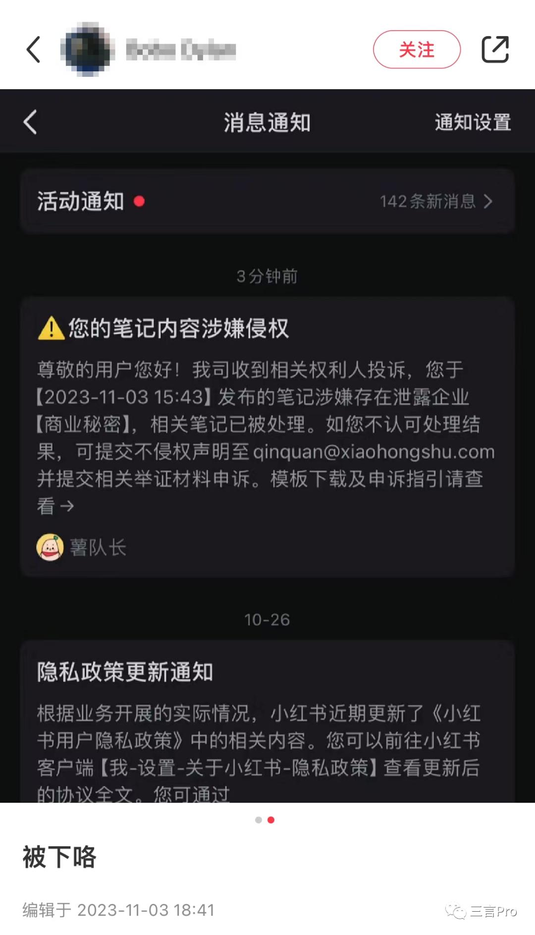 不过,随后该博主就表示,相关内容遭到投诉,被下架了,理由是涉嫌存在泄露企业商业机密。