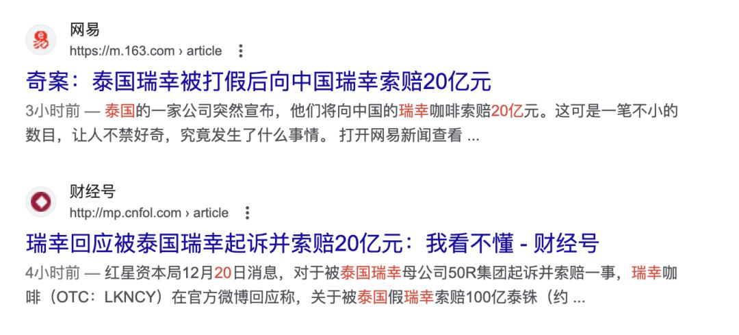 也就是,瑞幸在泰国让人给抄了,而且现在抄袭者还要倒打一耙,让瑞幸赔 20 亿。