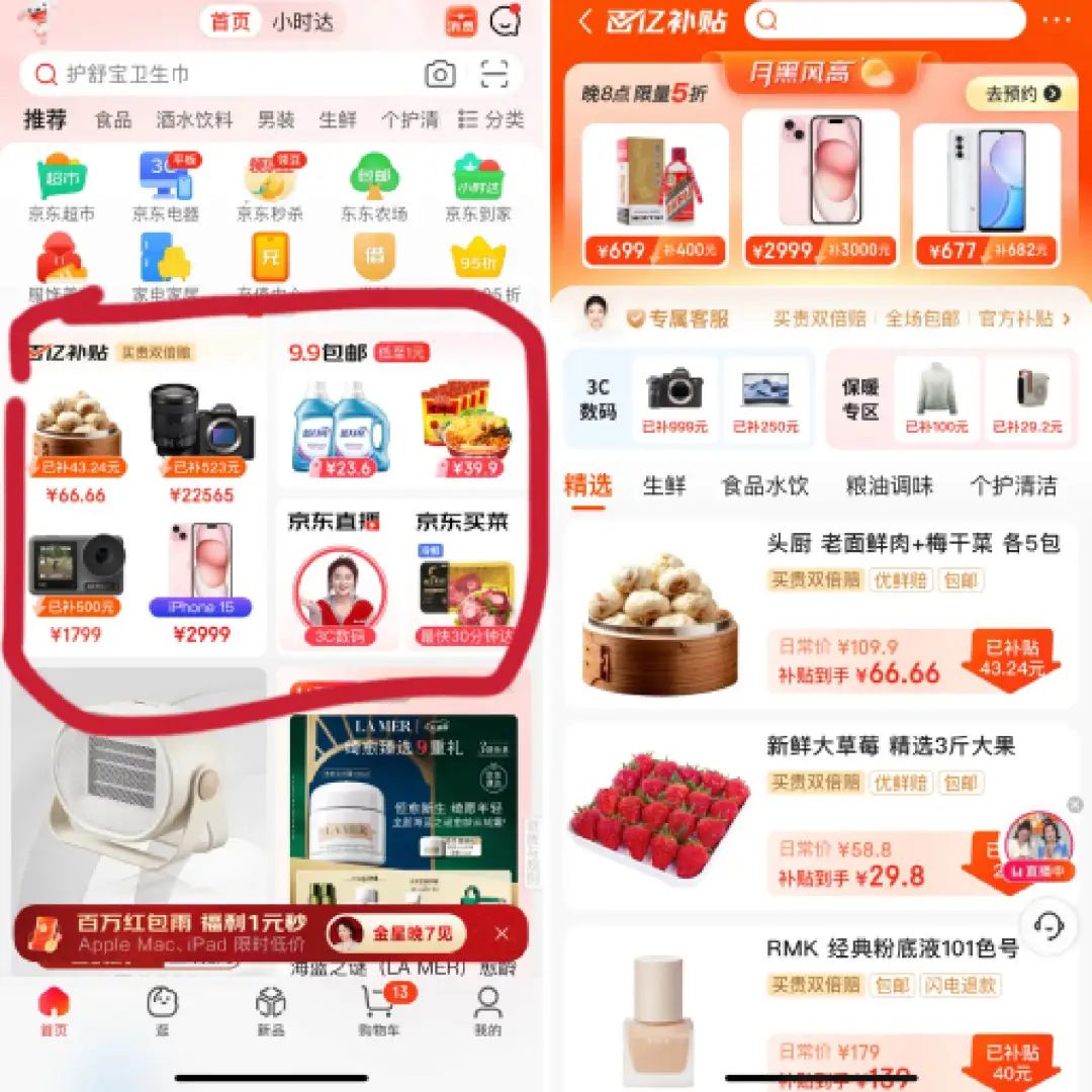 目前,京东“低价”策略全面推进。2023年上线了百亿补贴频道,并放开POP招商、下调运费门槛等。