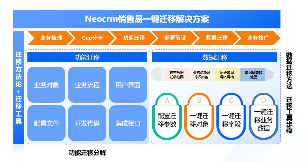而销售易也发布了CRM一键迁移解决方案,基于该方案,包括跨国企业在内的大型企业均可以实现业务流程复制后落地即用,系统界面无感切换,数据一键迁移高效准确。据了解,截止目前为止,销售易一键迁移解决方案为已交付实施的客户群体平均提升迁移效率30%以上。