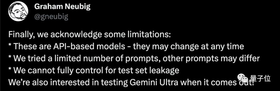 最后,CMU副教授Graham Neubig承认了这项研究的一些局限性。