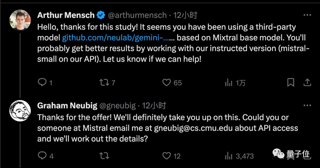 Mistral AI创始人也来给团队提供了官方版调用权限,认为能得到一个更好的结果。
