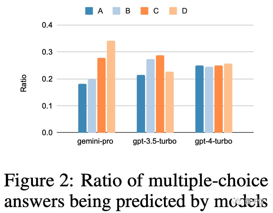 GPT系列在4个选项上的分布就要平衡很多,团队提出这可能是Gemini没针对多选题做大量指令微调造成的。