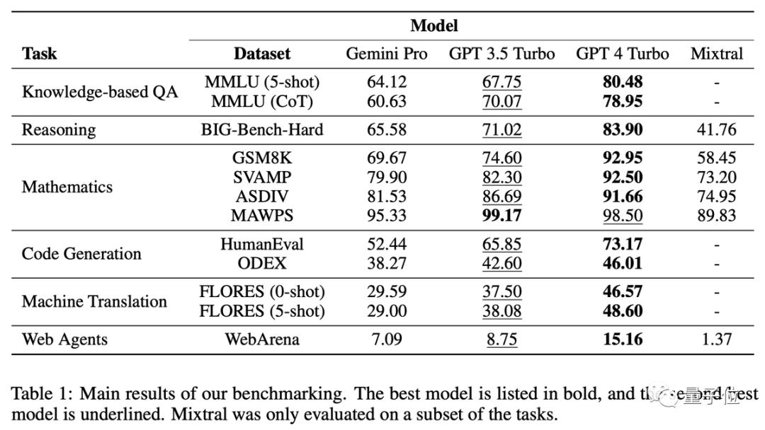 这项测试中除了Gemini与GPT系列,还搭上了最近很受关注的开源MoE模型Mixtral。