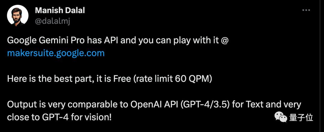 总得来,虽然Gemini Pro还是不如GPT-3.5,但是它胜在每分钟调用不超过60次就免费。