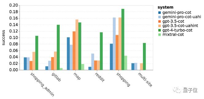 Gemini在整体表现不如GPT-3.5 Turbo,但在跨多个站点的任务中表现稍好。