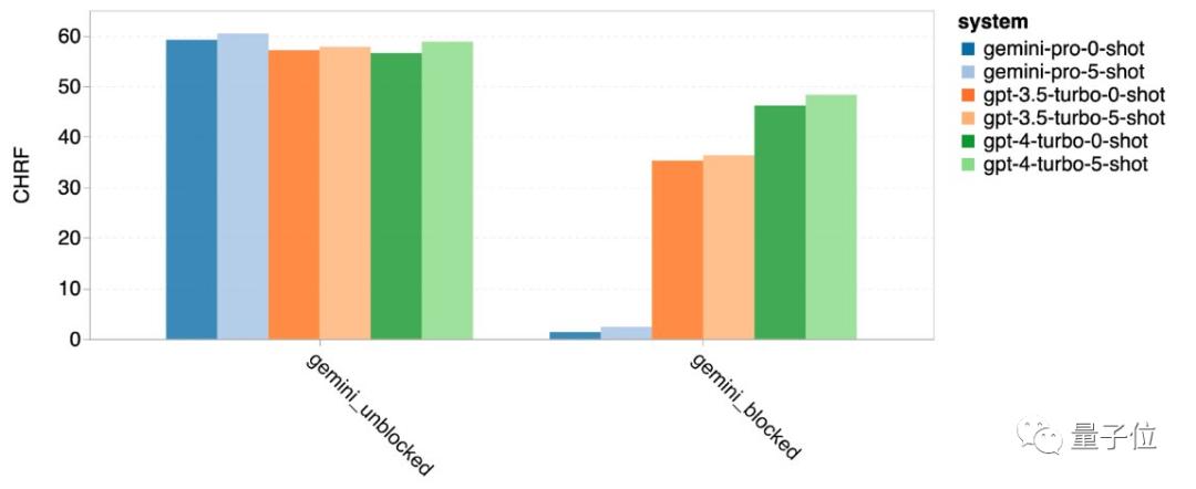翻译任务上,有12种类型Gemini拒绝回答,但是只要回答了的翻译质量都很高,整体表现超过GPT-4。